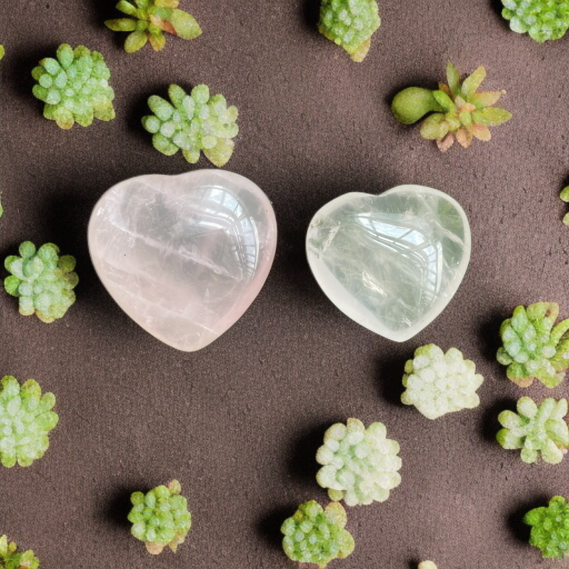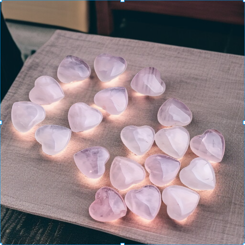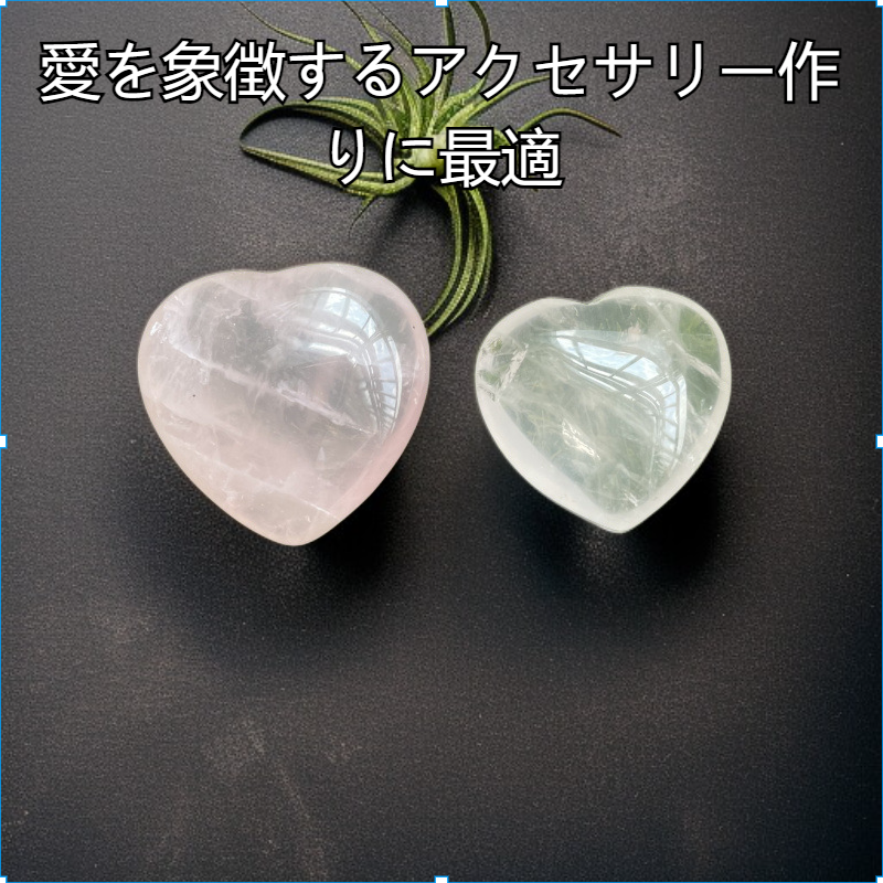 天然水晶ローズクォーツとピーチハートのビーズ。穴なしデザインで多用途。ハイビスカスストーン使用。愛の象徴アクセサリー作りに最適。